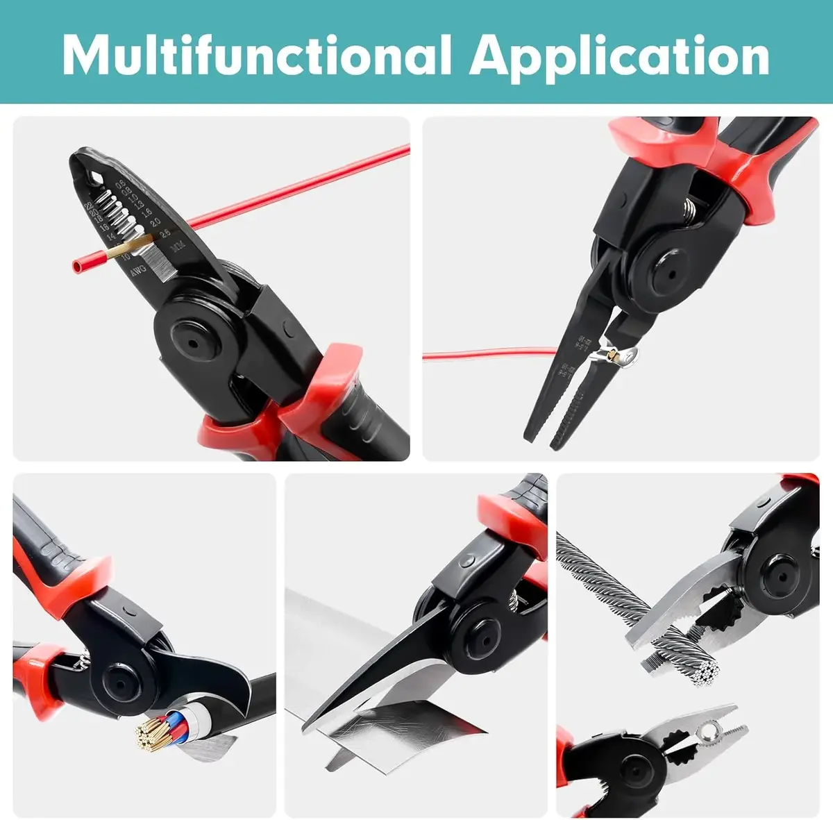 Upgrade your toolkit with this 5-in-1 Multifunctional Plier Set, featuring five interchangeable heads for wire stripping, crimping, cutting, electrician scissors, and linesman pliers. Designed for versatility and efficiency, this 8-inch plier kit ensures precision for electrical and wiring tasks. The quick-swap mechanism allows seamless transitions between functions, while the included storage case keeps everything organized. Perfect for electricians, DIYers, and professionals looking for an all-in-one solution.