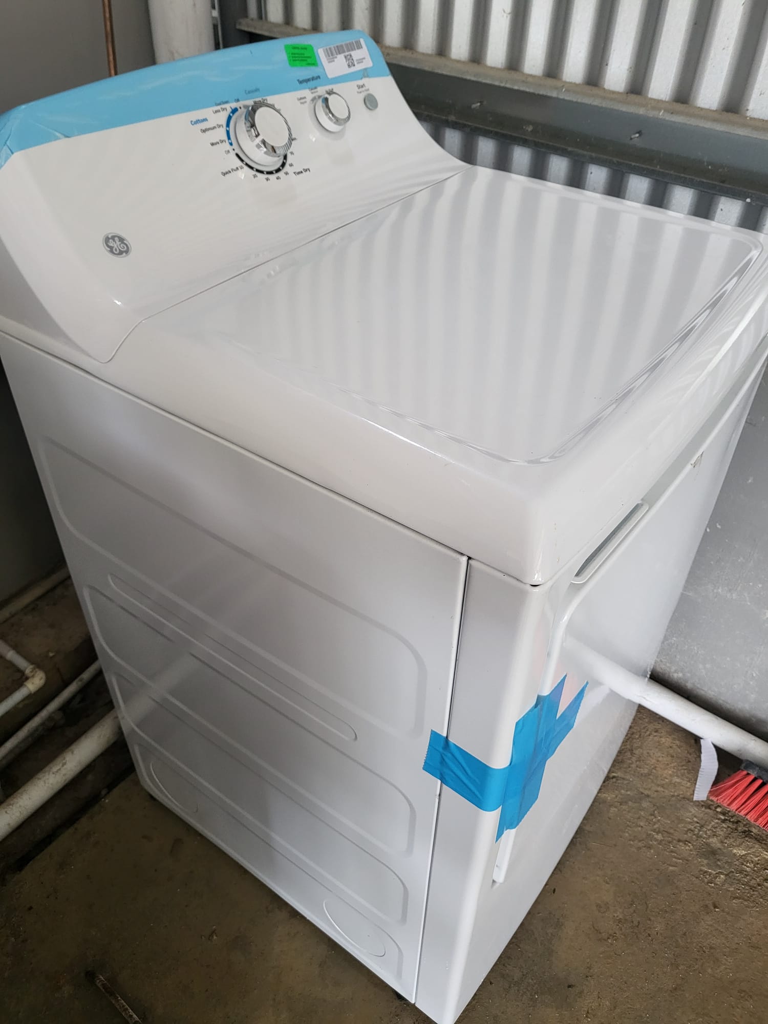 This GE 466583 Electric Dryer offers a generous 7.2 cu. ft capacity, perfect for handling family-sized laundry loads with ease. Although this unit is out-of-box and unused, it remains well-kept under cover, with all external pipes unattached and the interior never opened. Ideal for those seeking dependable drying performance at excellent value.
